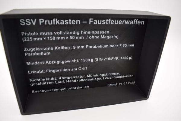 - 1× Prüfkasten für Faustfeuerwaffen (SSV‑Norm 2025)